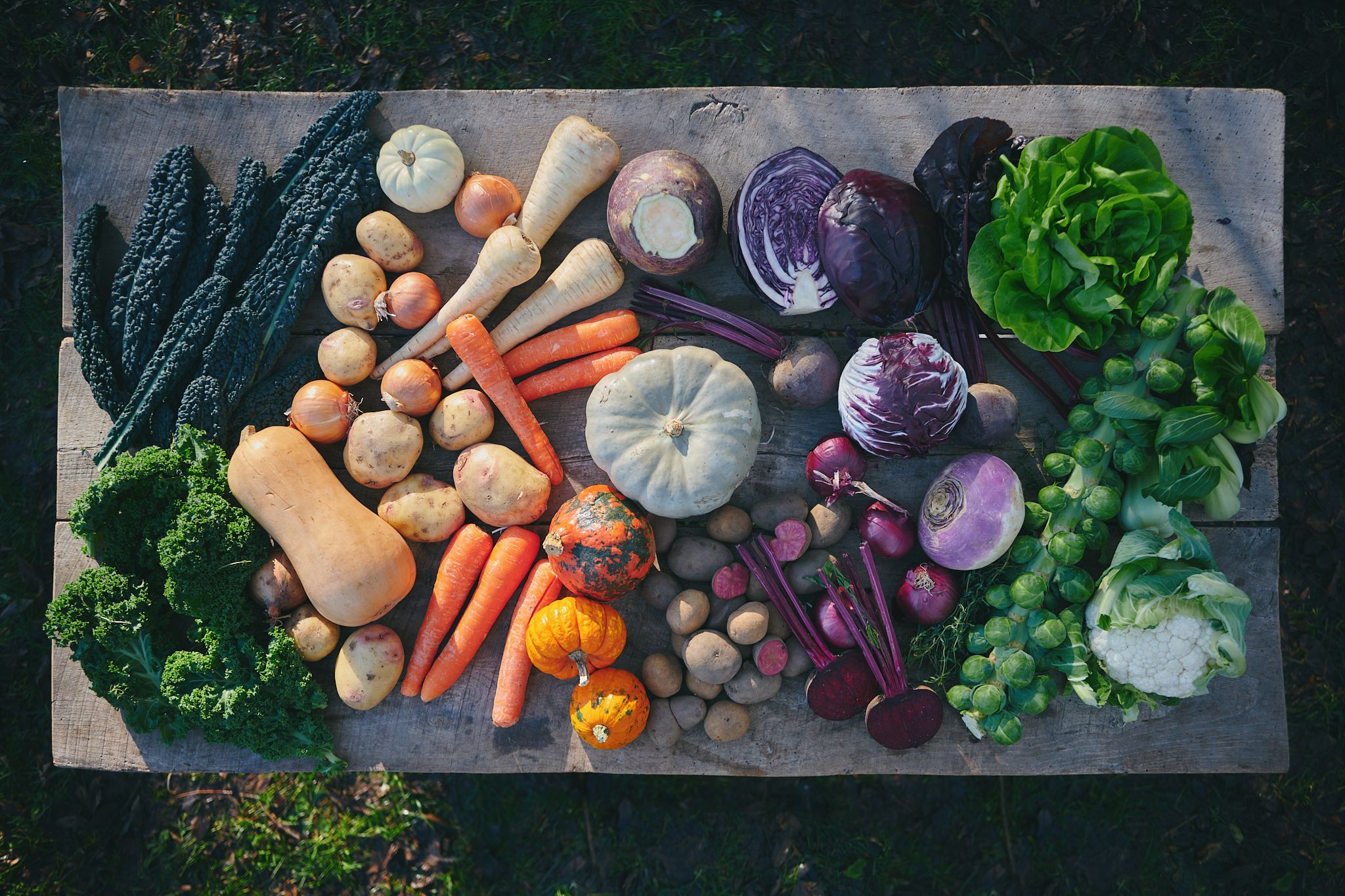 Fresh vegetables grown at Wild Farm and sourced from a small network of British organic farms.
